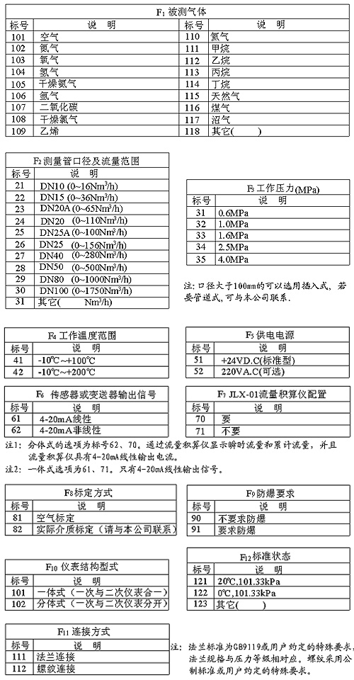 用户或设计单位选型时必须熟知本手册中的表1和表2中的设置和要求,然后按现场工作条件,对照表1或表2准确填写。如有不清楚之处可以与销售部或公司联系。 |