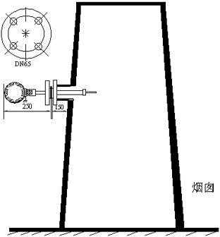 烟道气流量(速)计属于插入式法兰连接,见图(5)。因为烟囱有圆的或椭圆的,烟道多为矩形的,而且它们的面积都较大,所以测量点的选择应周密考虑。现场可用其他测量仪器按速度-面积法进行比对。